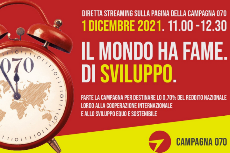 Il 1 dicembre è stata lanciata la campagna 070 dal titolo “Il mondo ha fame. Di sviluppo.” E’ una campagna promossa da AOI, CINI, Link 2007 e FOCSIV, che chiede a tutti i cittadini, ai parlamentari e al governo di dare maggiore rilevanza all’impegno italiano per un mondo più giusto e sostenibile. L’Italia fa parte del G7…